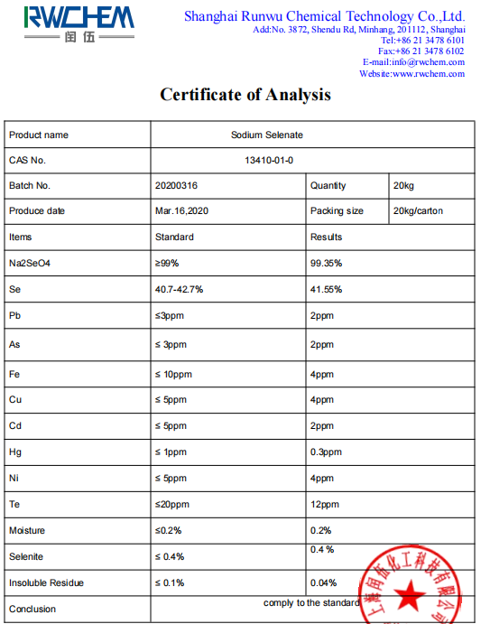 Prìs factaraidh CAS 13410-01-0 Sodium Selenate Na2SeO4 le càileachd àrd